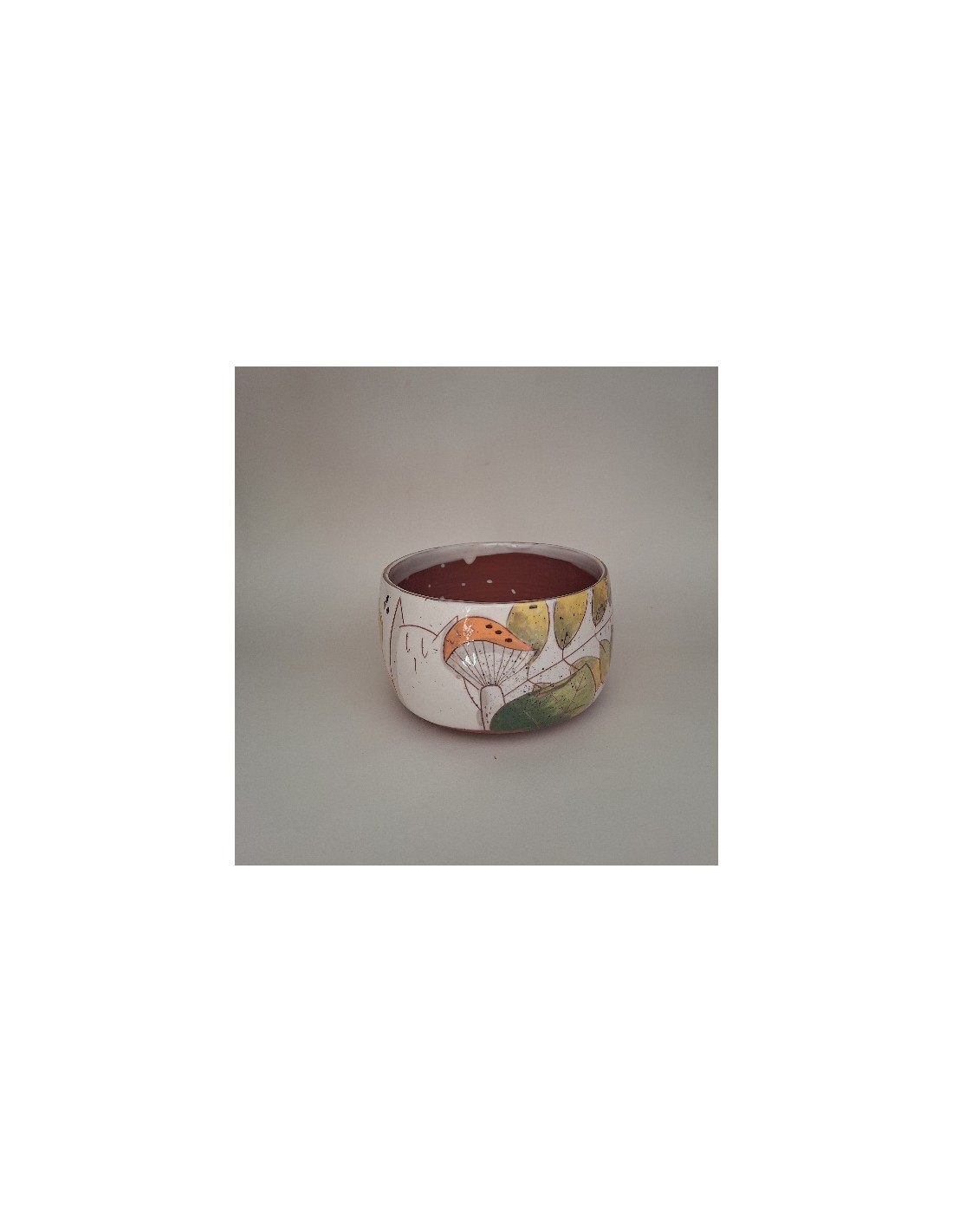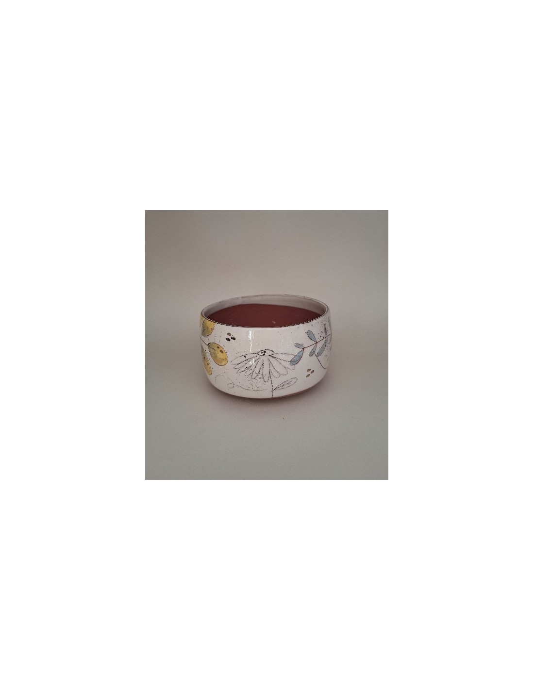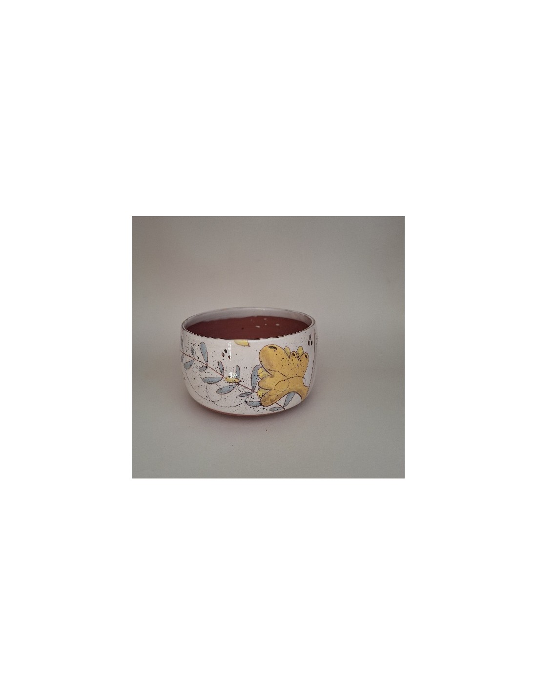 Le bol est en terre vernissée et dorée à l'or fin. Chaque pièce est entièrement réalisée par mes soins. Cette pièce est tournée. Son décor est dessiné à la main ce qui fait que chaque pièce est unique. Chaque pièce subit 3 cuissons: une cuisson à 980° et une seconde à 1020° plus une cuisson supplémentaire pour l'application de l'or.