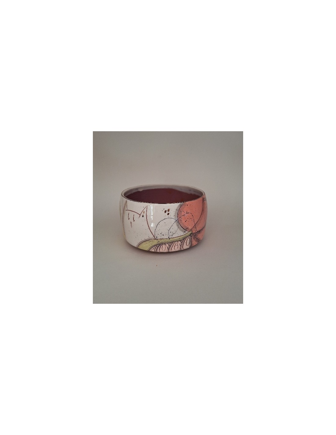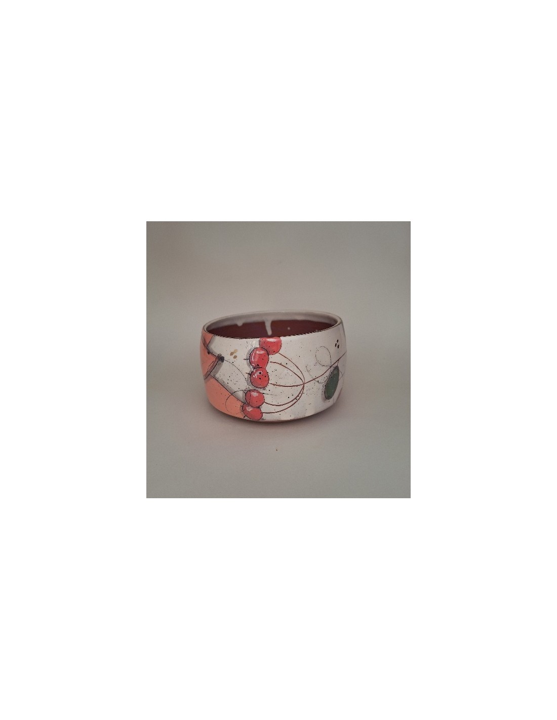 Le bol est en terre vernissée et dorée à l'or fin. Chaque pièce est entièrement réalisée par mes soins. Cette pièce est tournée. Son décor est dessiné à la main ce qui fait que chaque pièce est unique. Chaque pièce subit 3 cuissons: une cuisson à 980° et une seconde à 1020° plus une cuisson supplémentaire pour l'application de l'or.