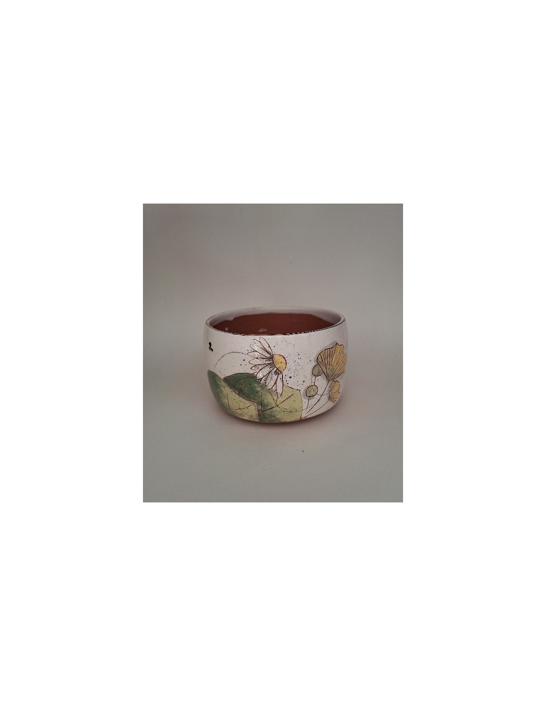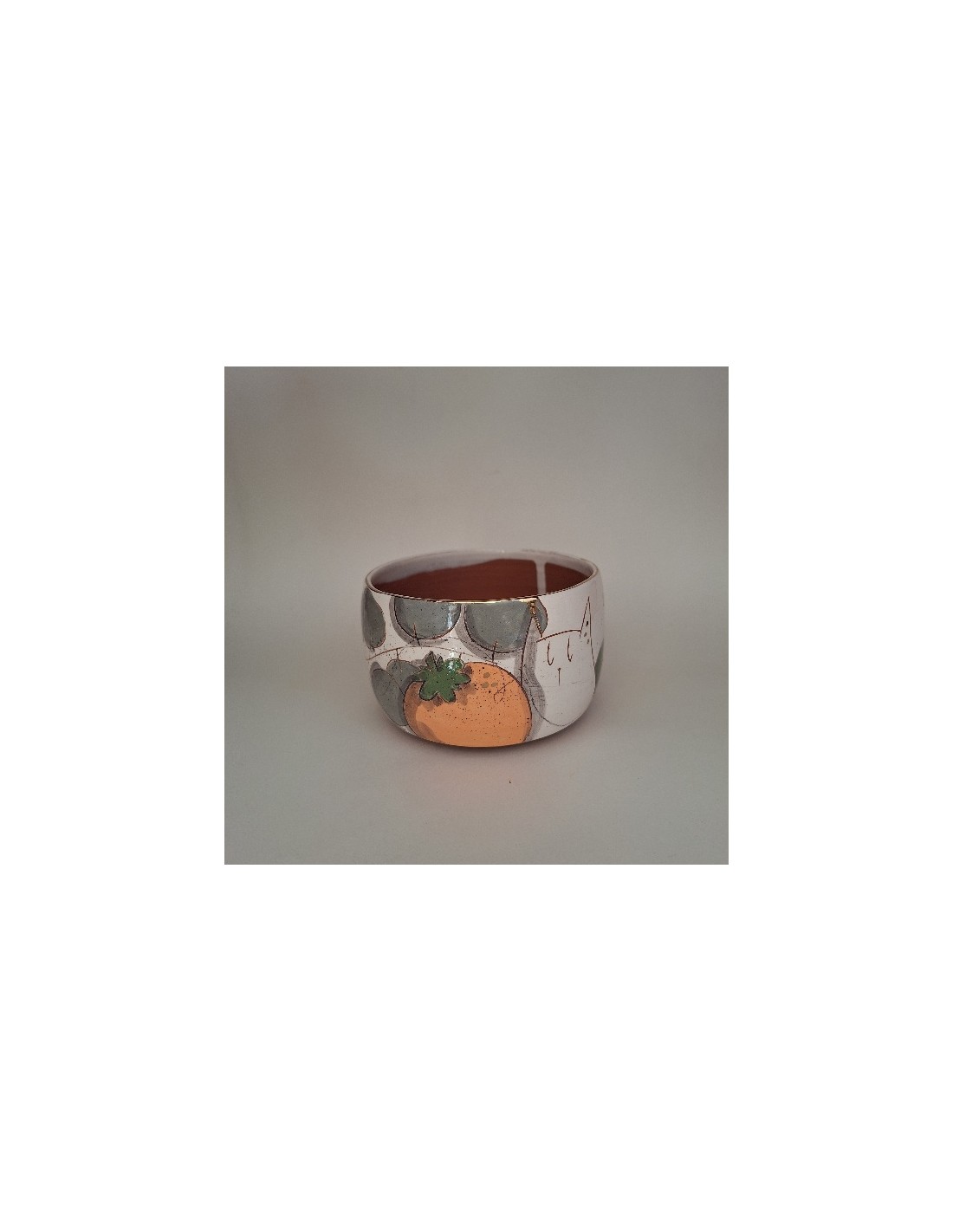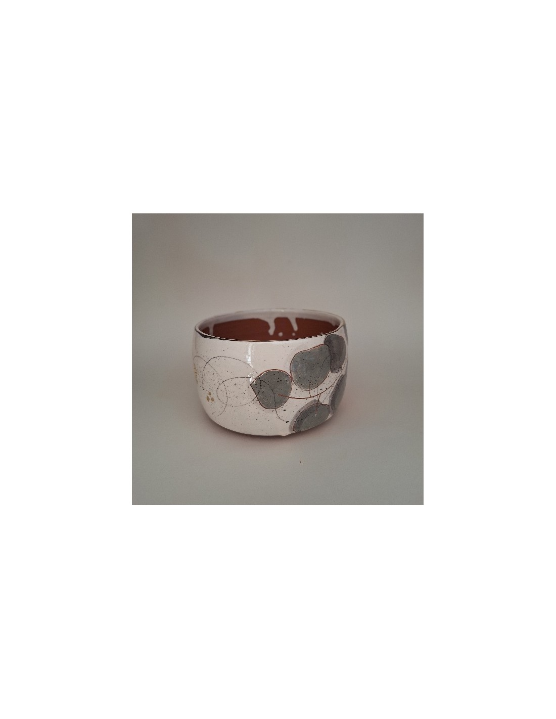 Le bol est en terre vernissée et dorée à l'or fin. Chaque pièce est entièrement réalisée par mes soins. Cette pièce est tournée. Son décor est dessiné à la main ce qui fait que chaque pièce est unique. Chaque pièce subit 3 cuissons: une cuisson à 980° et une seconde à 1020° plus une cuisson supplémentaire pour l'application de l'or.