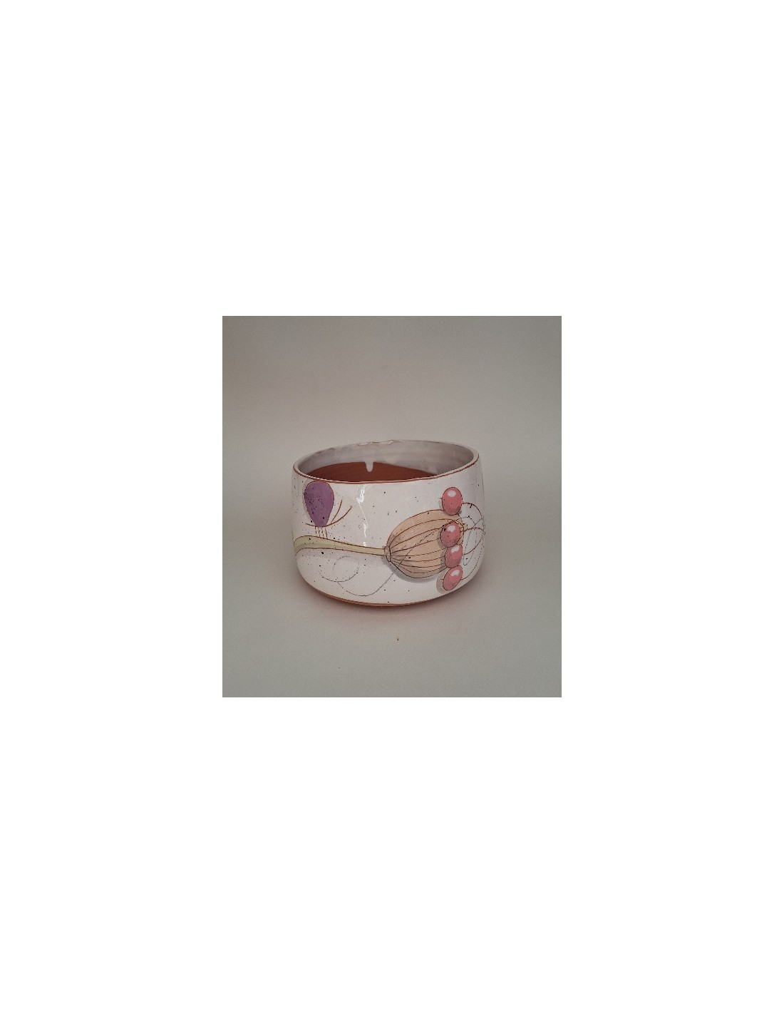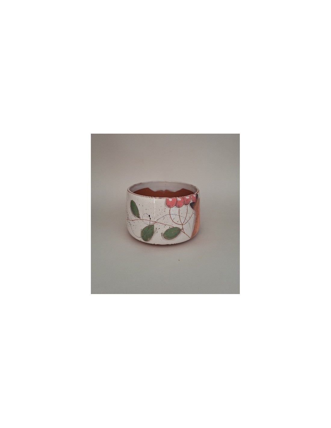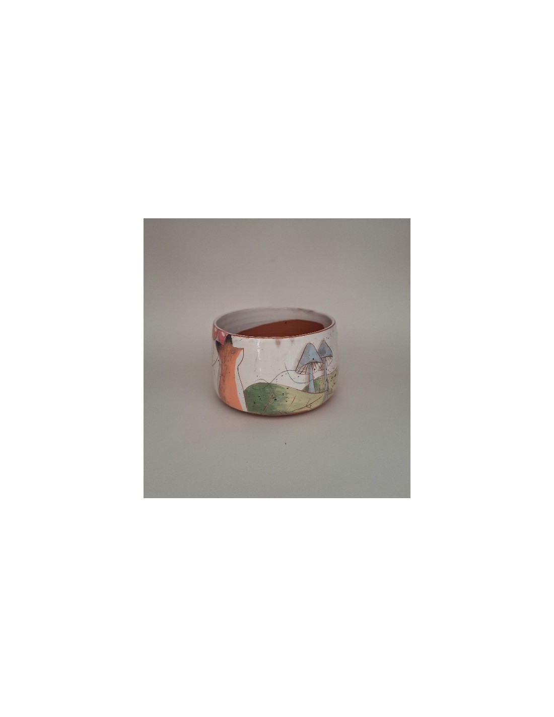 Le bol est en terre vernissée et dorée à l'or fin. Chaque pièce est entièrement réalisée par mes soins. Cette pièce est tournée. Son décor est dessiné à la main ce qui fait que chaque pièce est unique. Chaque pièce subit 2 cuissons: une cuisson à 980° et une seconde à 1020° plus une cuisson supplémentaire pour l'application de l'or.