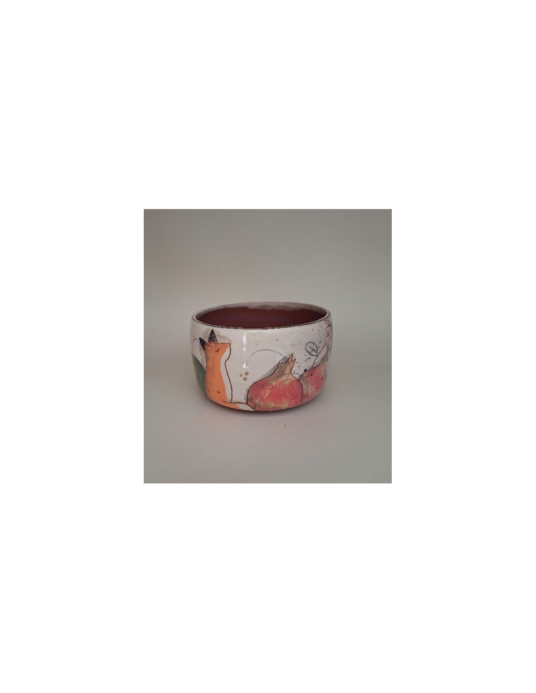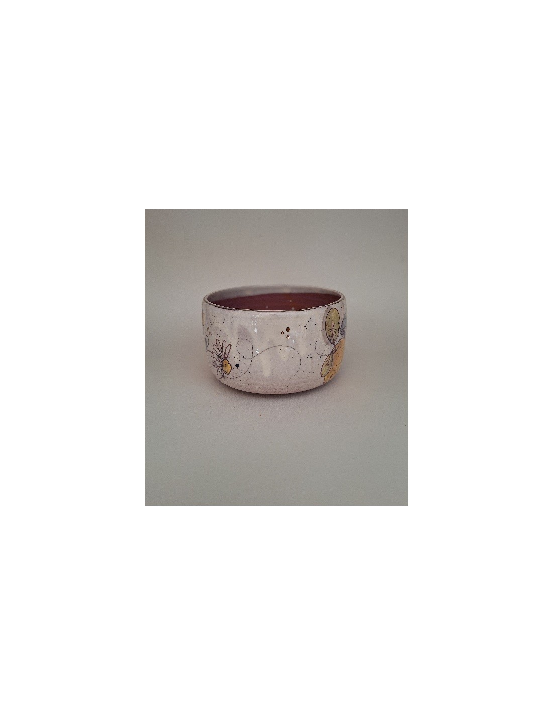 Le bol est en terre vernissée et dorée à l'or fin. Chaque pièce est entièrement réalisée par mes soins. Cette pièce est tournée. Son décor est dessiné à la main ce qui fait que chaque pièce est unique. Chaque pièce subit 3 cuissons: une cuisson à 980° et une seconde à 1020° plus une cuisson supplémentaire pour l'application de l'or.