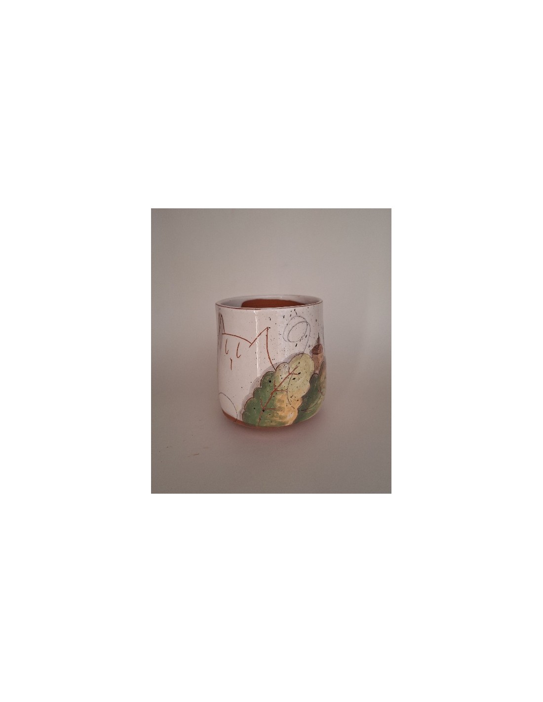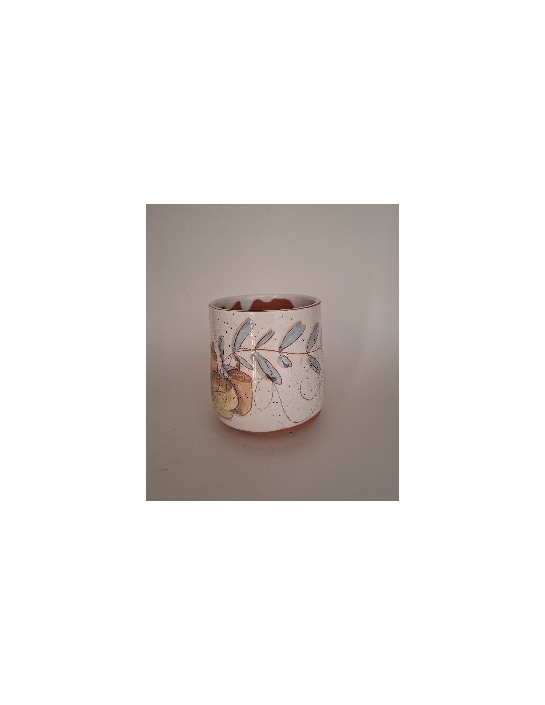 Le Mug est en terre vernissée et dorée à l'or fin. Chaque pièce est entièrement réalisée par mes soins. Cette pièce est tournée. Son décor est dessiné à la main ce qui fait que chaque pièce est unique. Chaque pièce subit 2 cuissons: une cuisson à 980° et une seconde à 1020°