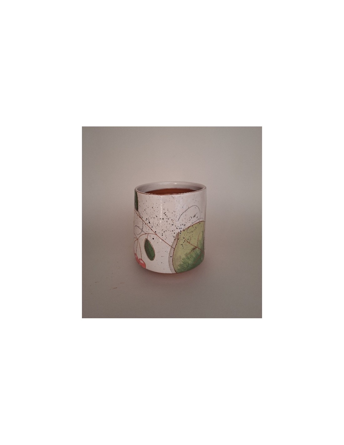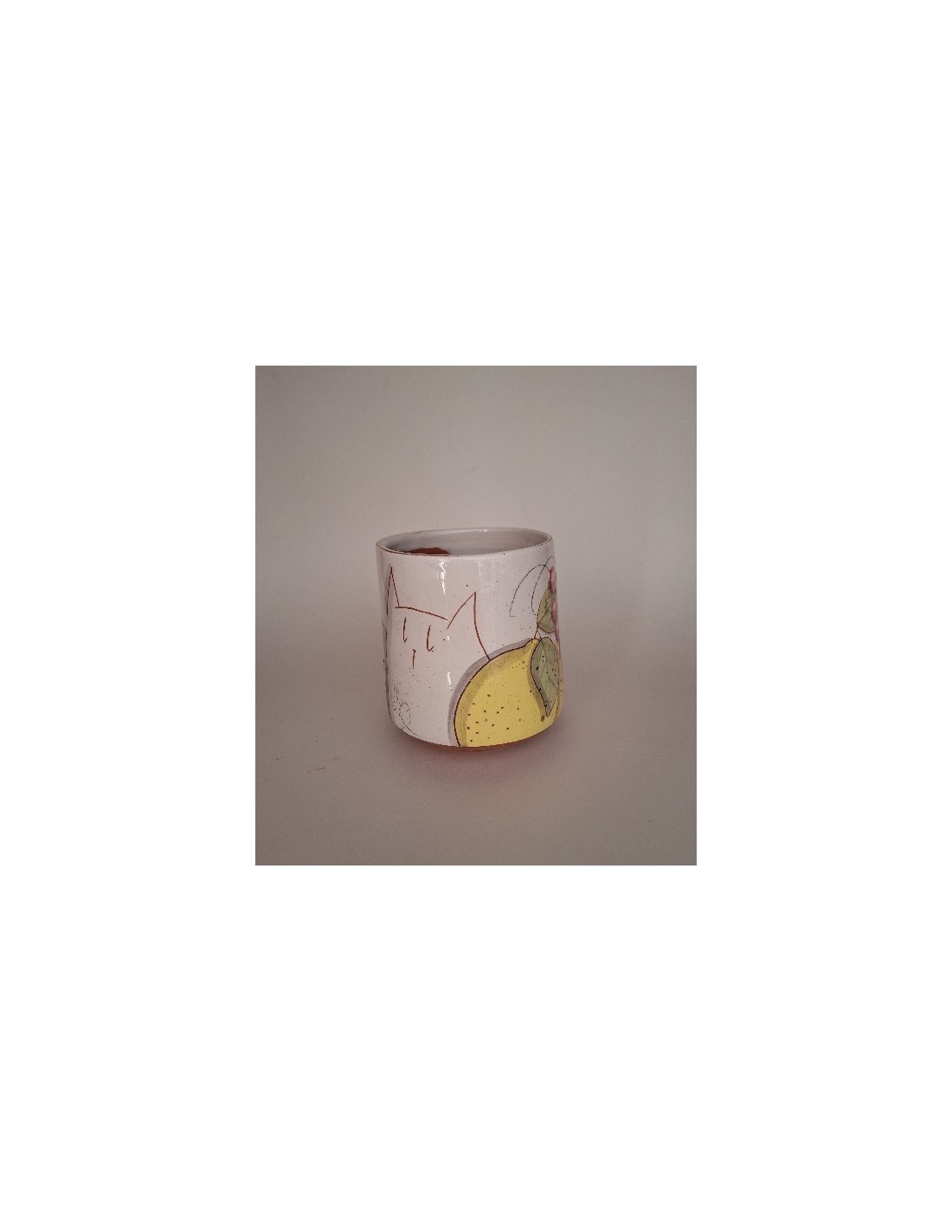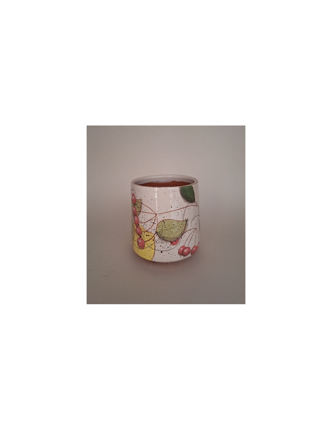 Le Mug est en terre vernissée et dorée à l'or fin. Chaque pièce est entièrement réalisée par mes soins. Cette pièce est tournée. Son décor est dessiné à la main ce qui fait que chaque pièce est unique. Chaque pièce subit 2 cuissons: une cuisson à 980° et une seconde à 1020°