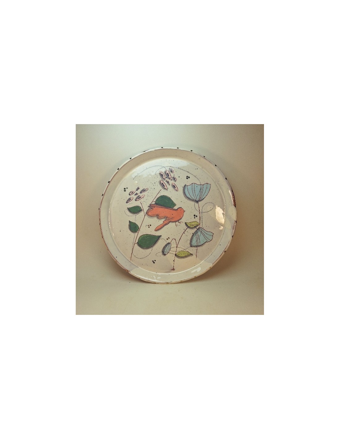 L'assiette est en terre vernissée et dorée à l'or fin. Chaque pièce est entièrement réalisée par mes soins. Cette pièce est tournée. Son décor est dessiné à la main ce qui fait que chaque pièce est unique. Chaque pièce subit 3 cuissons: une cuisson à 980° et une seconde à 1020° plus une cuisson supplémentaire pour l'application de l'or.