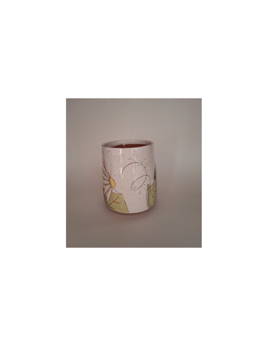 Le Mug est en terre vernissée et dorée à l'or fin. Chaque pièce est entièrement réalisée par mes soins. Cette pièce est tournée. Son décor est dessiné à la main ce qui fait que chaque pièce est unique. Chaque pièce subit 2 cuissons: une cuisson à 980° et une seconde à 1020°