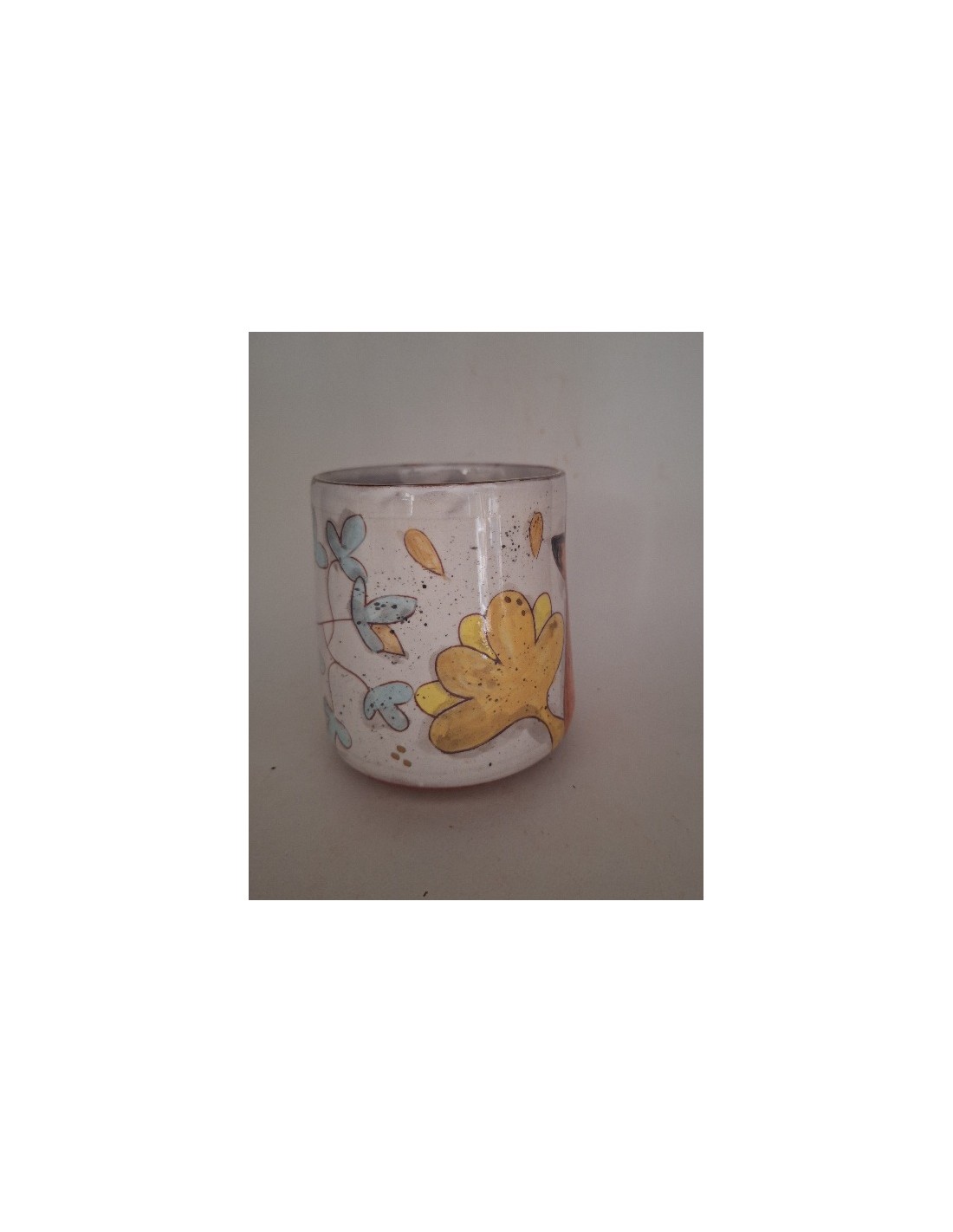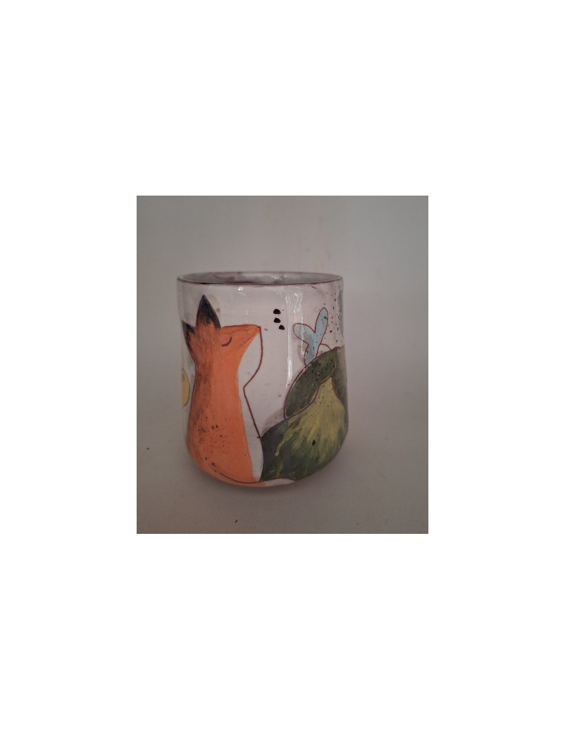 e Mug est en terre vernissée et dorée à l'or fin. Chaque pièce est entièrement réalisée par mes soins. Cette pièce est tournée. Son décor est dessiné à la main ce qui fait que chaque pièce est unique. Chaque pièce subit 3 cuissons: une cuisson à 980° et une seconde à 1020° plus une cuisson supplémentaire pour l'application de l'or.